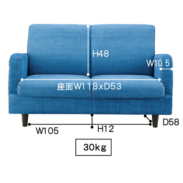 ジーンズソファ ソファ 2人掛け ソファー コンパクト ファブリック 布張り 肘付き 脚付き 二人掛け 2人用 イス 椅子 北欧 モダン レトロ カフェ風 おしゃれ かわいい リビング 一人暮らし
